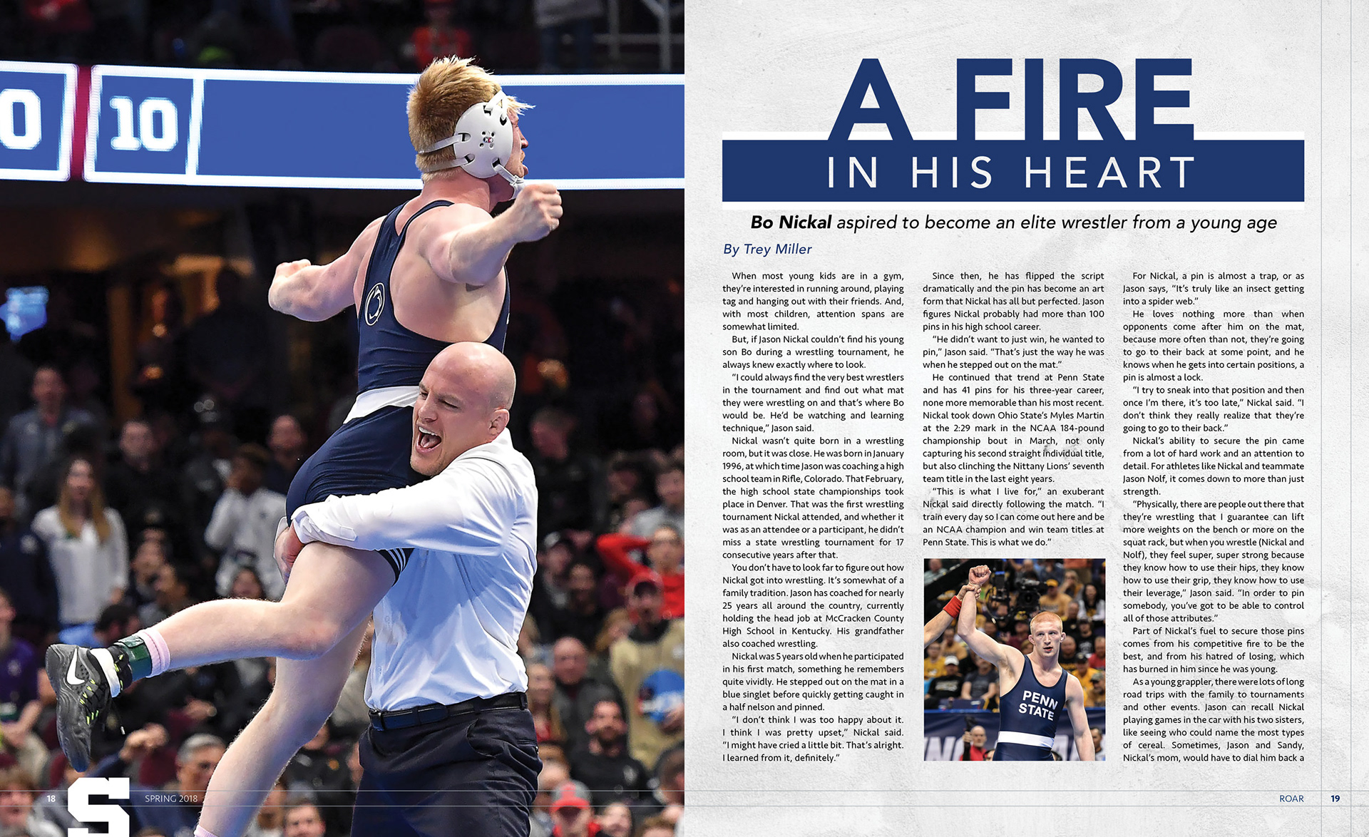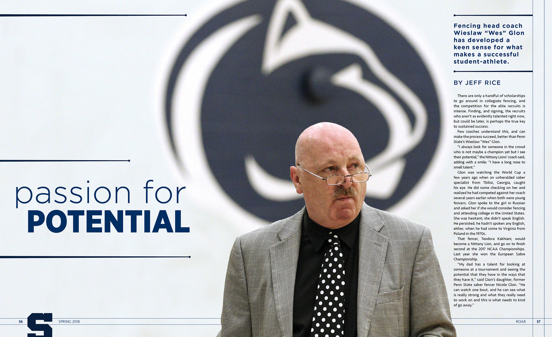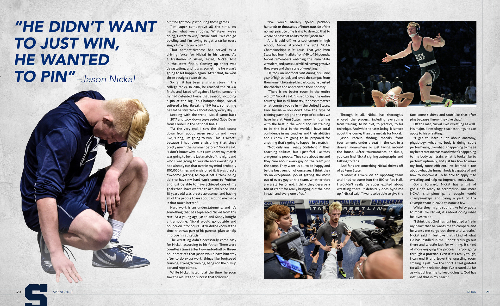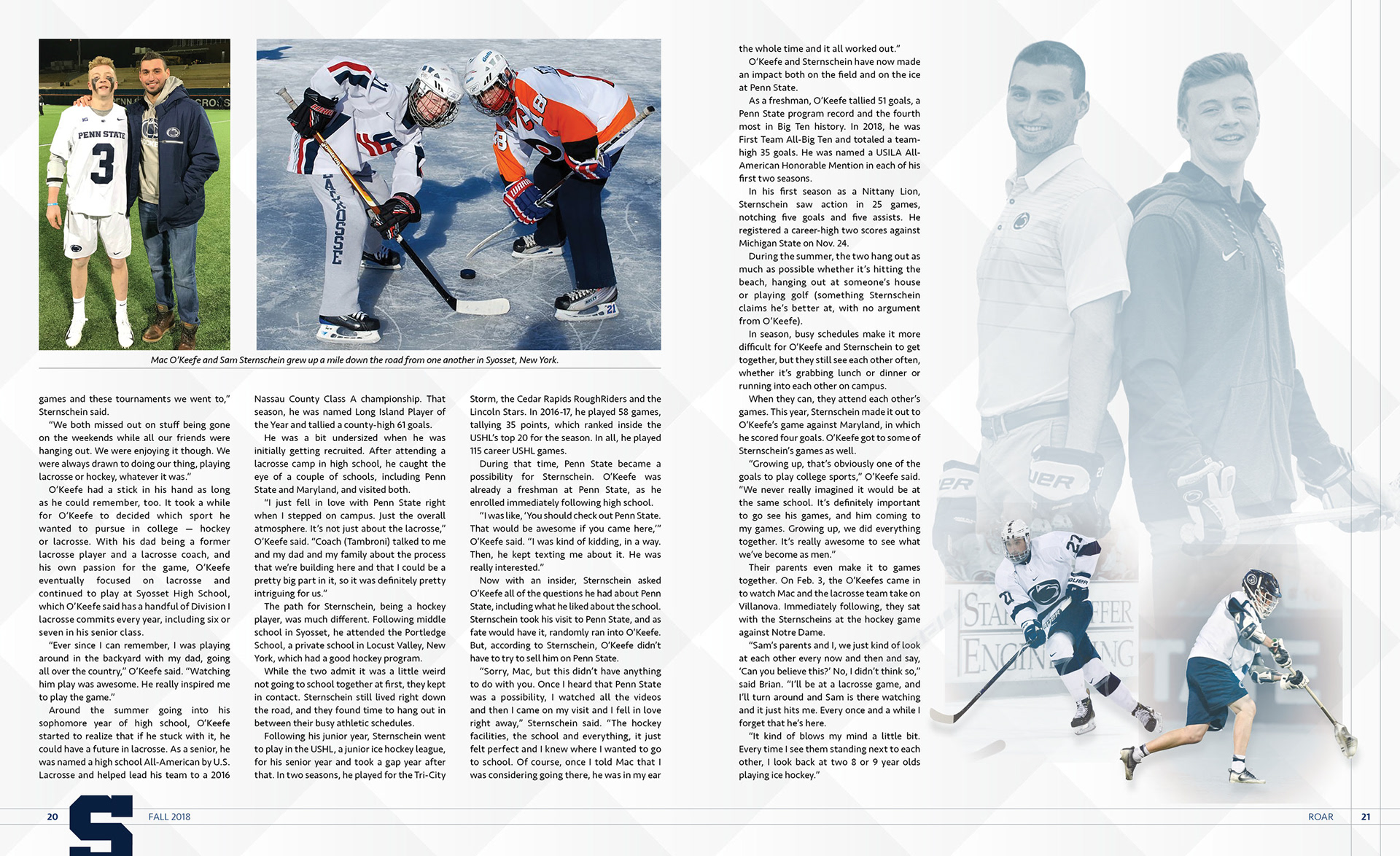 Served as the magazine designer for Penn State Athletics' alumni magazine ROAR. Worked with writers and copy editors to make sure each design was true to its story, and with the staff photographer to plan and shoot cover ideas.