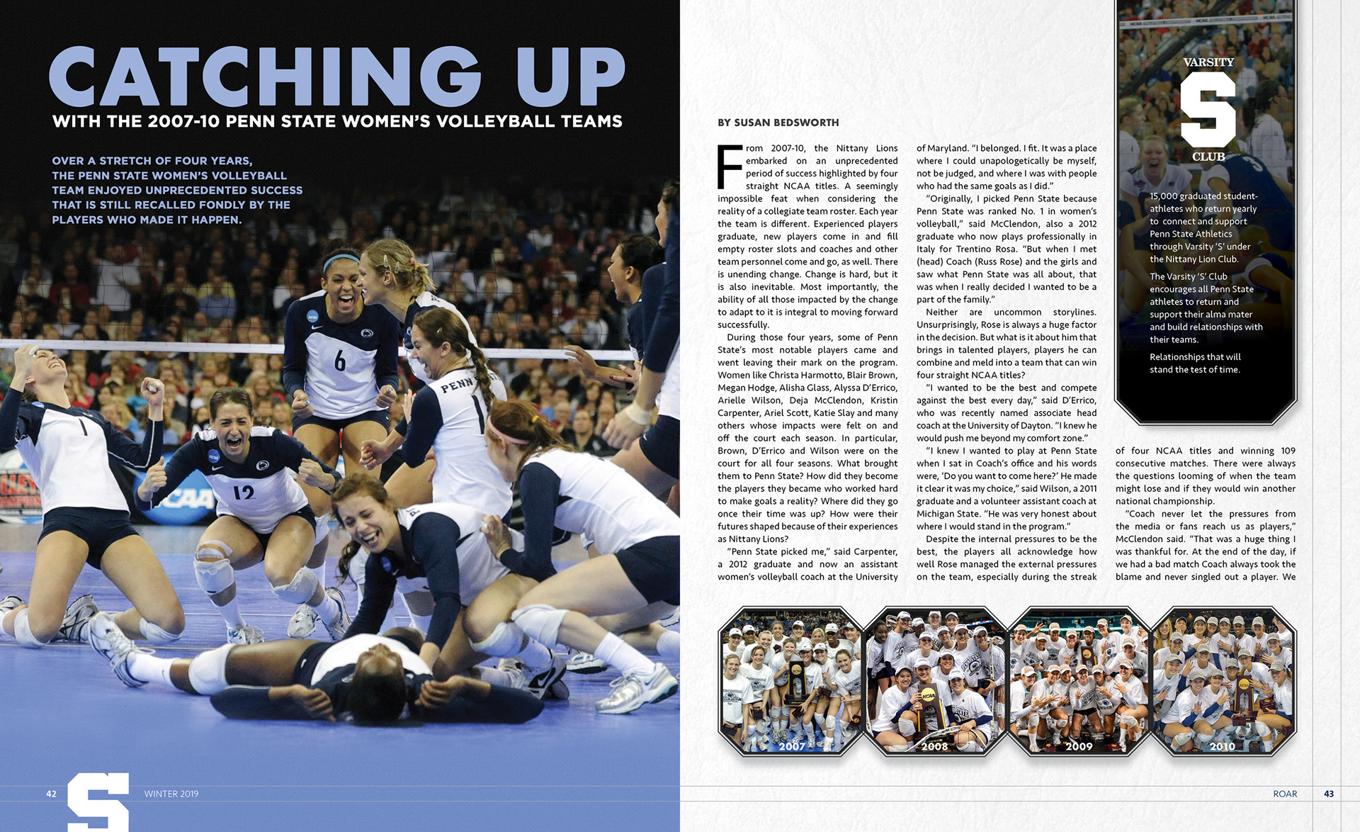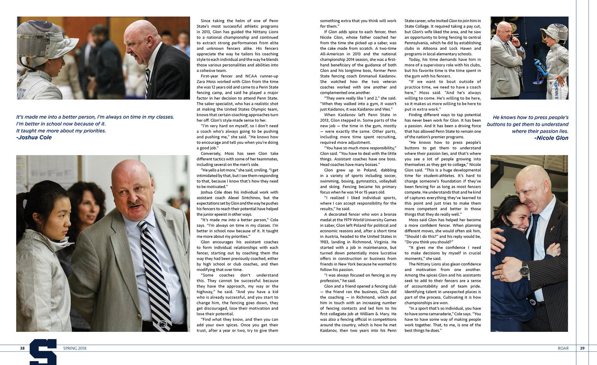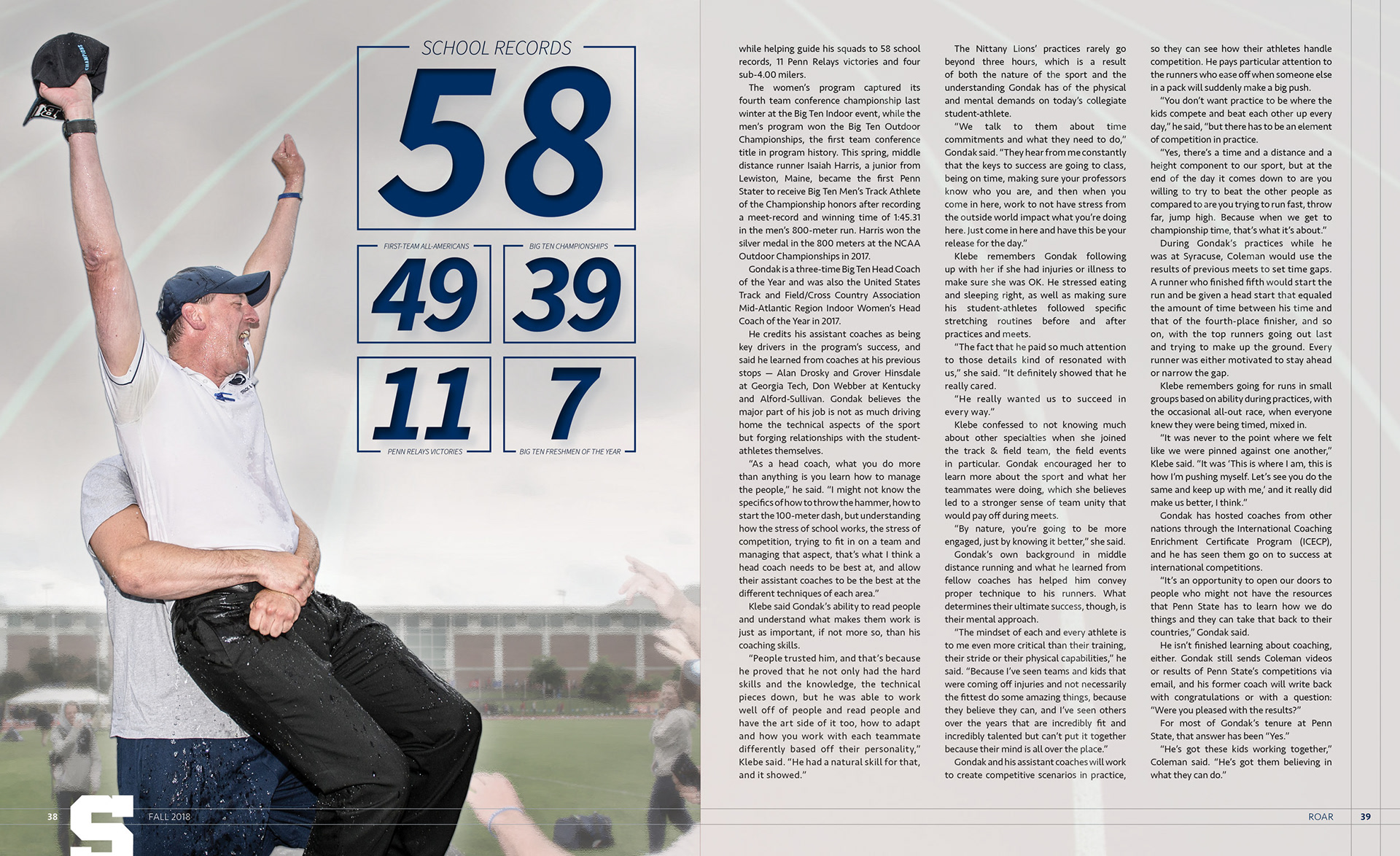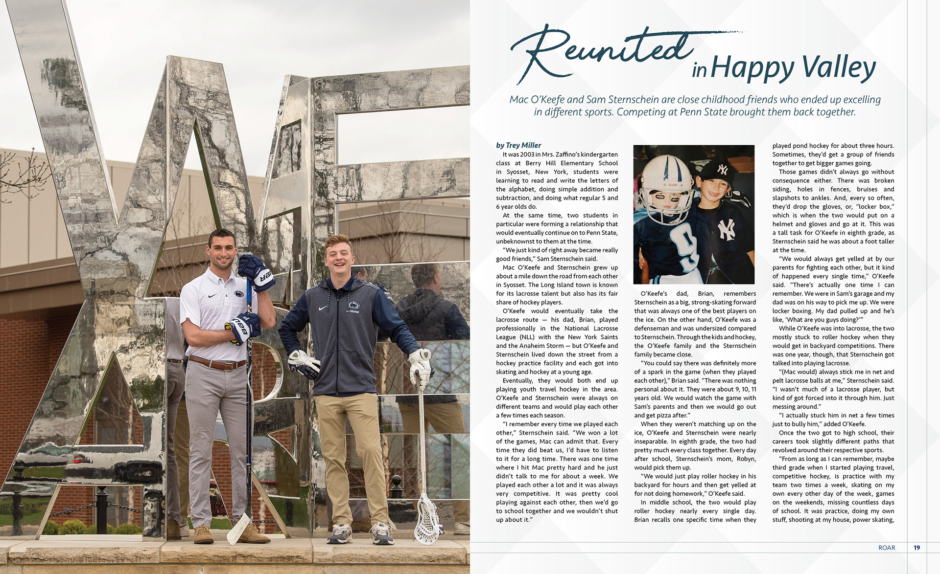 Served as the magazine designer for Penn State Athletics' alumni magazine ROAR. Worked with writers and copy editors to make sure each design was true to its story, and with the staff photographer to plan and shoot cover ideas.